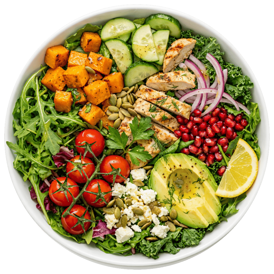 Pick a salad for each day. Your plan saves automatically. Earn streaks and badges along the way.